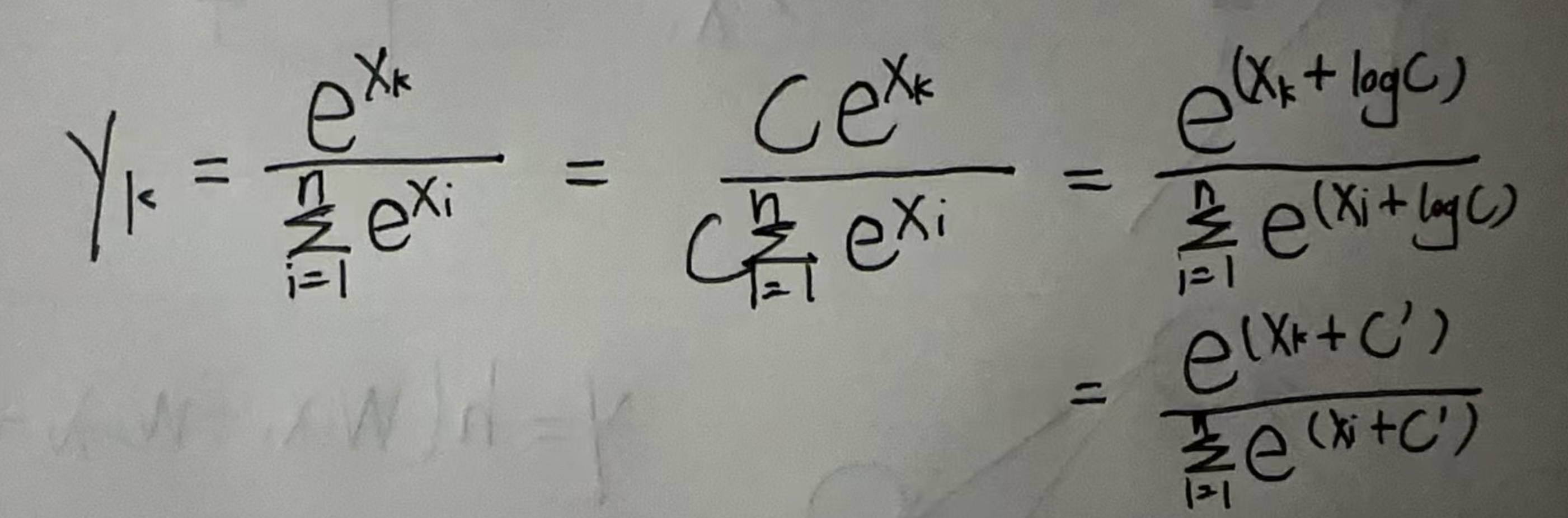 可以看到其中大量使用了 e 的指数,如果 xk 过大会导致数字溢出,为了解决这个问题需要对公式进行改进。