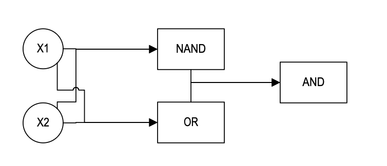 异或门我们可以通过叠加感知机来实现,实现逻辑如下所示。