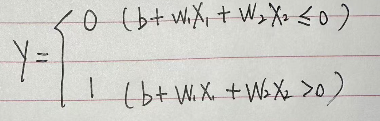 上述逻辑门都可以通过一层神经元实现,但是异或门则无法通过一层实现。可以看到无论与门,与非门,还是或门可以用类似下面的函数表达。